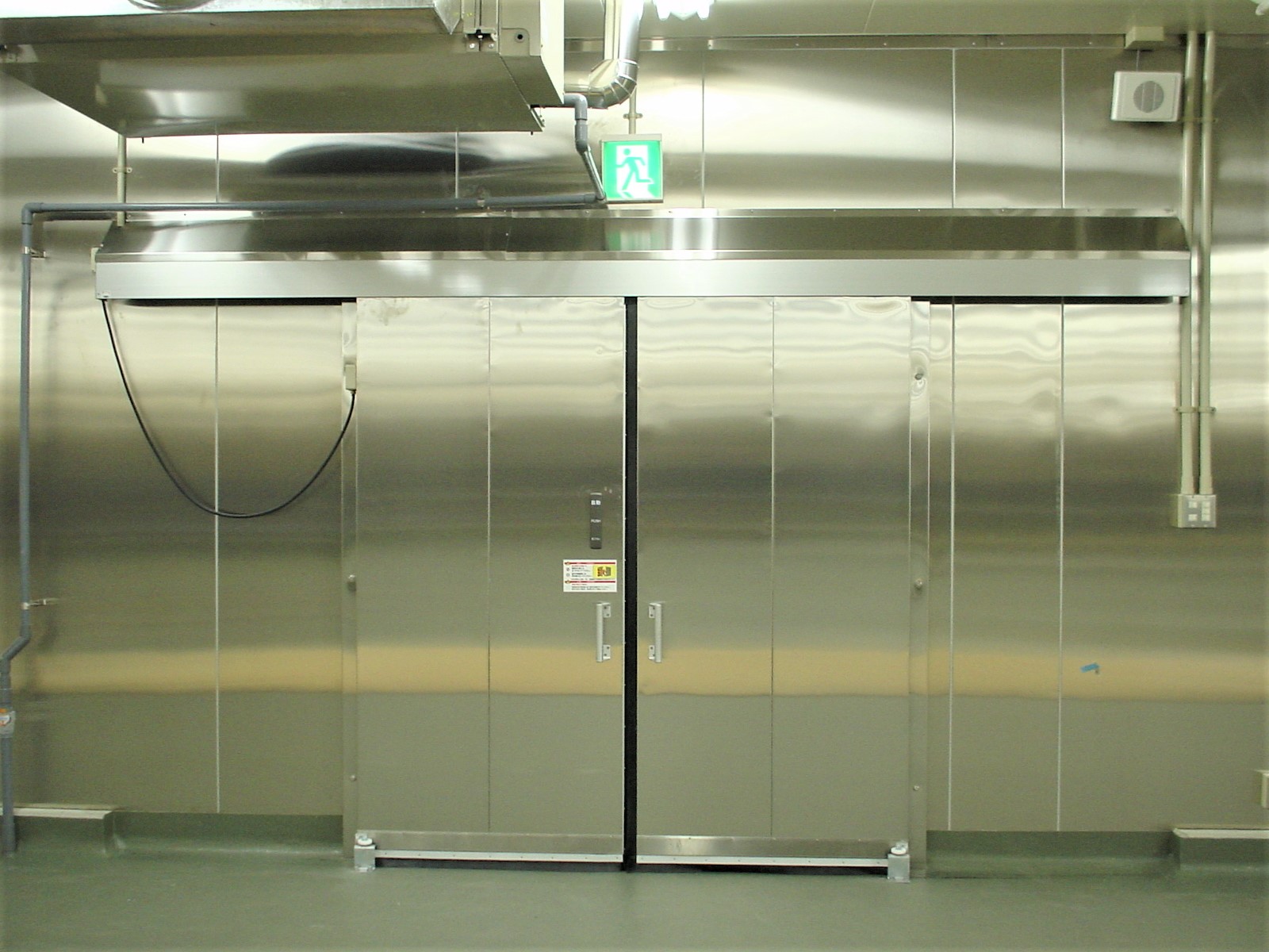 衛生面を主体に考慮し、ユニット部分はフルカバーとなり、主に加工場に適した扉です。高性能DCブラシレスモーターの採用と、マイクロコンピューター制御により、静かでかつスピーディーな開閉動作が可能となりました。 また、従来に比べコンパクトな形状の実現により、パネル等の間仕切りにも適しております。加えて、安全面から召合せ部分に反転スイッチを組み込んでいます。